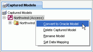 取得した「Northwind (Access)」モデルを右クリックし、「Convert to Oracle Model」を選択します。