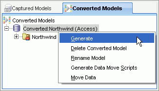 「Converted:Northwind (Access)」を右クリックし、「Generate」を選択します。
