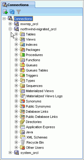 エクスポートされたMicrosoft Access XMLファイルをOracle SQL Developer内に取得するには、次の手順を実行します。