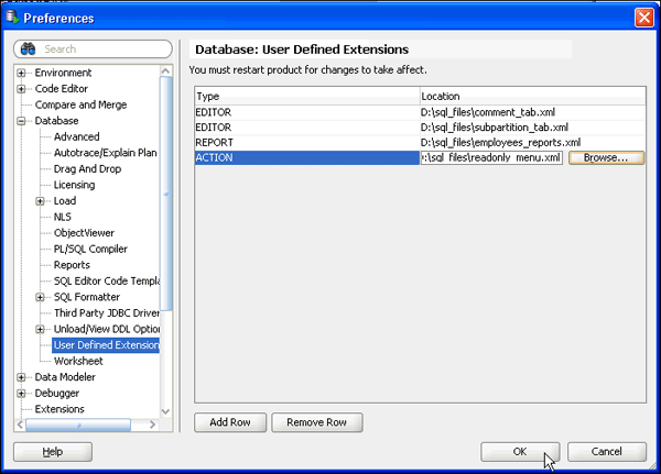 変更を有効にするには、Oracle SQL Developerを終了し、再起動します。