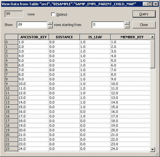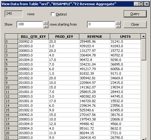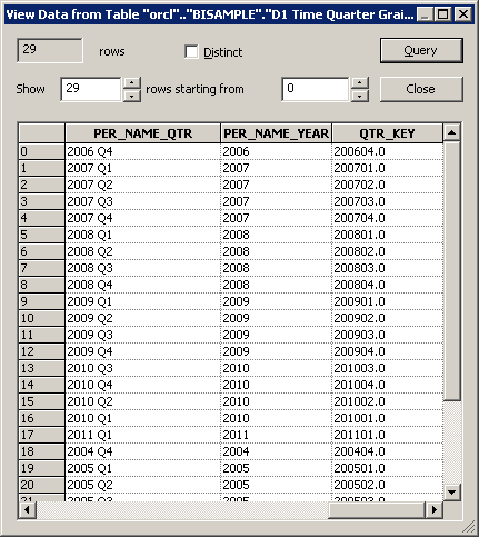 確認したらView Dataダイアログ・ボックスを閉じます。 データをインポートした後は、行数を更新するかデータを表示して接続を確認することをお勧めします。 データの表示または行数の更新が正常に実行できる場合、接続は正しく構成されています。