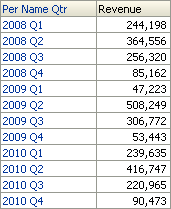次の分析を作成して、集計表をテストします。 Time.Per Name Quarter