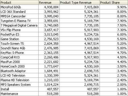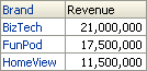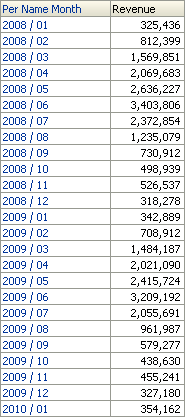 Month Ago Revenueには前月の売上げが表示されます。 Year To Date Revenueはその年の売上げ累計を月ごとに計算します。