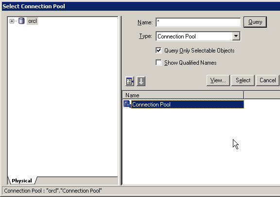 「Connection Pool」をダブルクリックして、このオブジェクトを選択します。