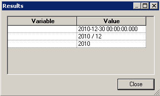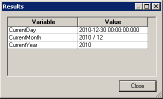 「Results」をクリックして、(サンプル・データセットに基づいて)現在の年、月、および日のデータのみが返されることを確認します。