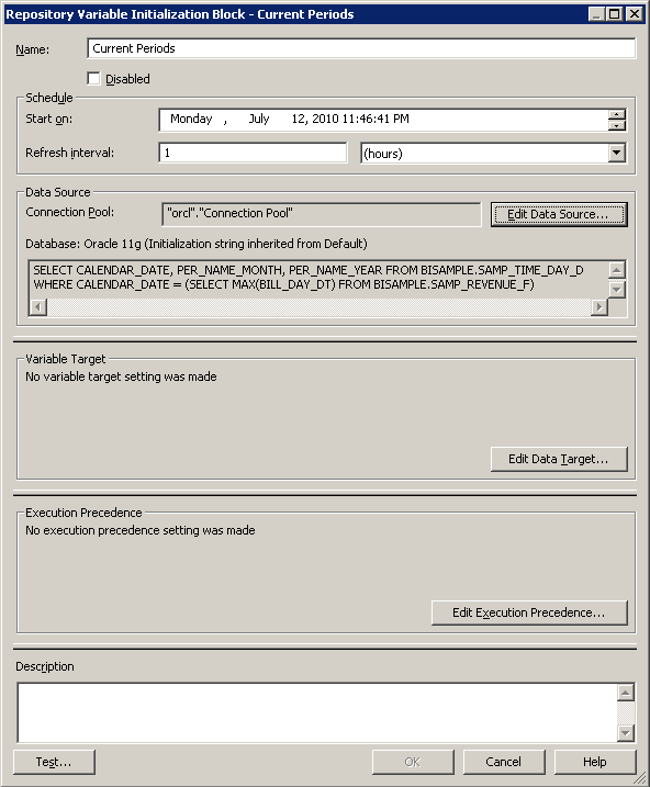 「Edit Data Source」ボタンをクリックして、Repository Variable Initialization Block Data Sourceダイアログ・ボックスを開きます。
