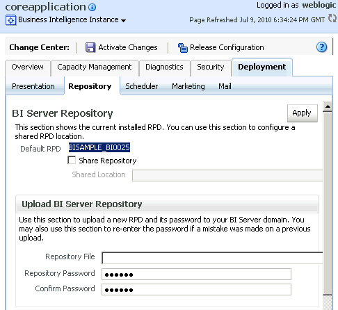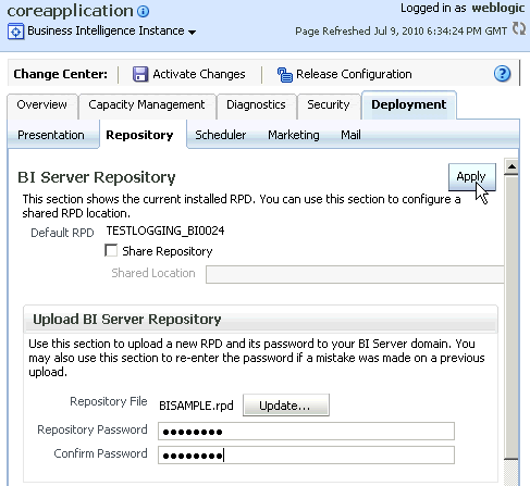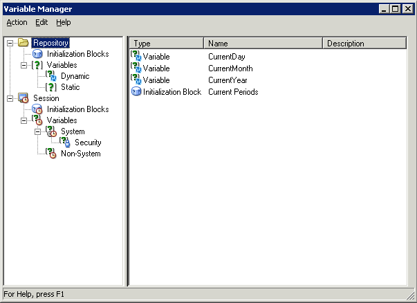 「OK」をクリックして、Repository Variable Initialization Block Data Sourceダイアログ・ボックスを閉じます。 作業内容をチェックします。