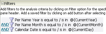 この手順を繰り返して、CurrentMonthリポジトリ変数とCurrentDayリポジトリ変数をそれぞれPer Name Month列とCalendar Date列のフィルタとして追加します。