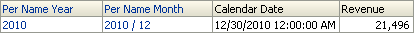 この例では、結果はこのチュートリアルに使用したサンプル・データベースのデータによって決定されますが、データベースには2010年12月のデータが保持されています。