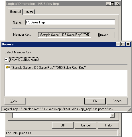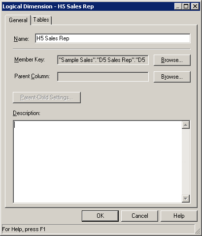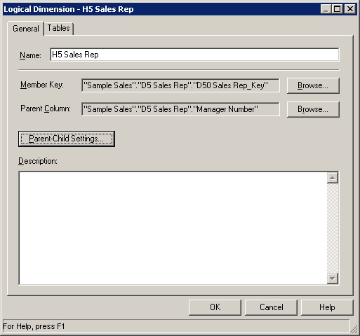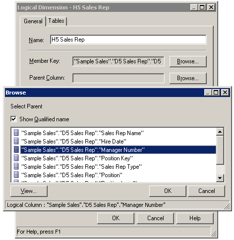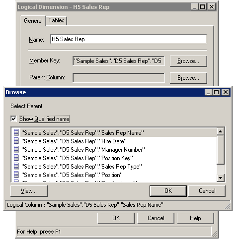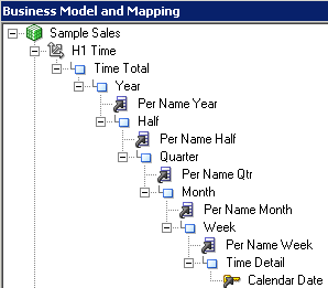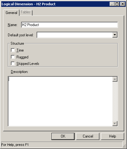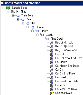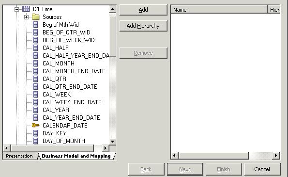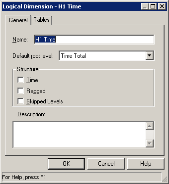 BMMレイヤーで「H1 TIME」論理ディメンションをダブルクリックして、Logical Dimensionダイアログ・ボックスを開きます。