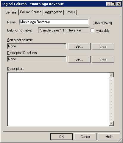 Generalタブで、列にMonth Ago Revenueという名前を付けます。