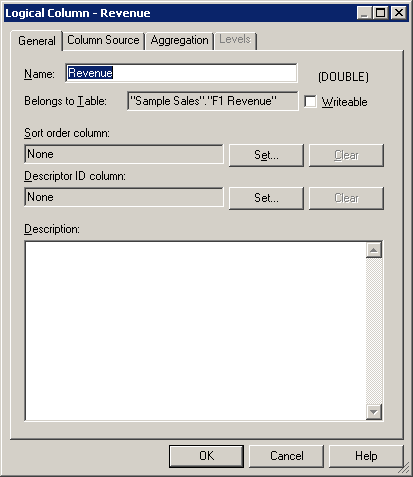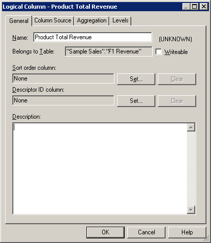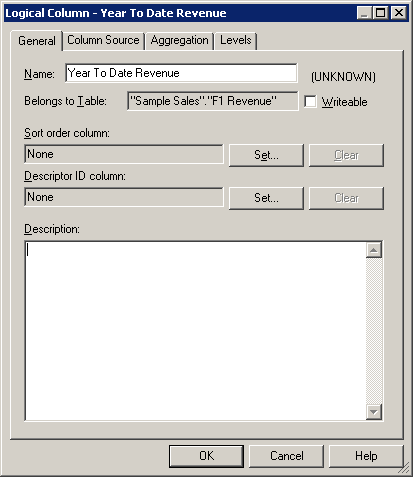 Generalタブで、新しい論理列にYear To Date Revenueという名前を付けます。