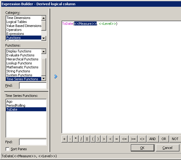 「Functions」→「Time Series Functions」を選択し、「ToDate」をダブルクリックして計算式に挿入します。