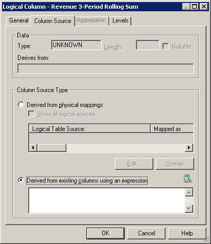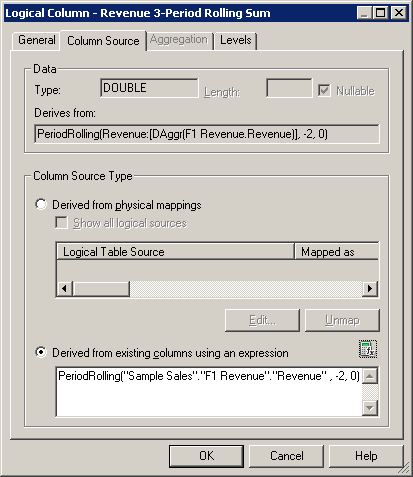 Generalタブで、新しい論理列にRevenue 3-Period Rolling Sumという名前を付けます。