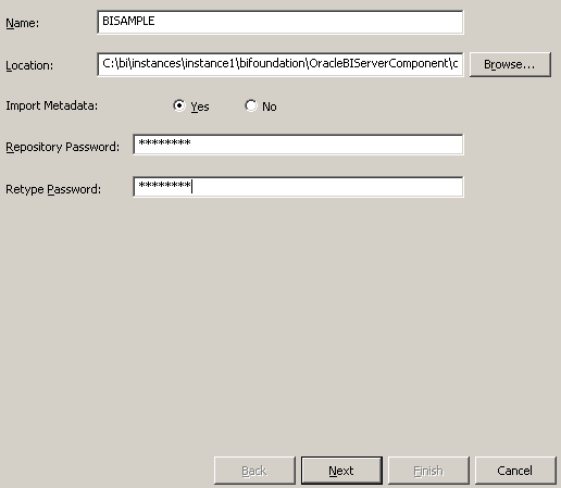 Repository PasswordとRetype Passwordにそれぞれパスワードを入力します。 このチュートリアルではリポジトリのパスワードをBISAMPLEとします。