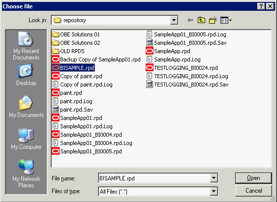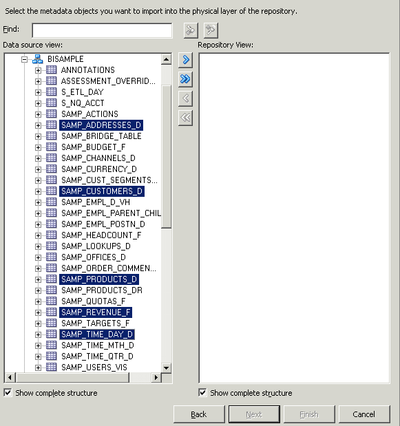 インポートが完了したら、Repository Viewの「BISAMPLE」を展開し、5つの表が表示されることを確認します。