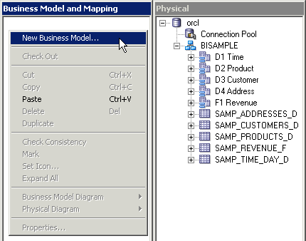 このトピックでは、Oracle BI Administration Toolを使用してリポジトリのBusiness Model and Mappingレイヤーを作成する方法を紹介します。