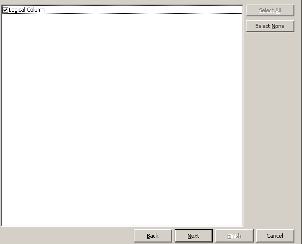 Logical Columnが選択されていることを確認します。 論理表などの他のオブジェクト・タイプを選択していた場合は、そのタイプがこの画面に表示されます。
