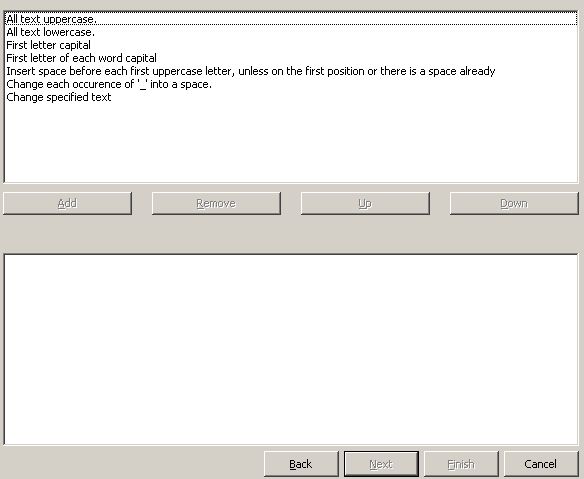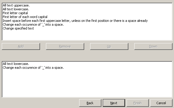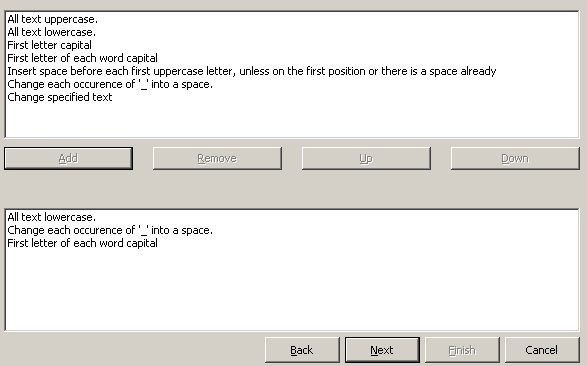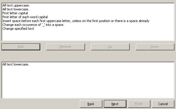 Select Rules画面で「All text lowercase」を選択して「Add」をクリックして下部ペインにルールを追加します。