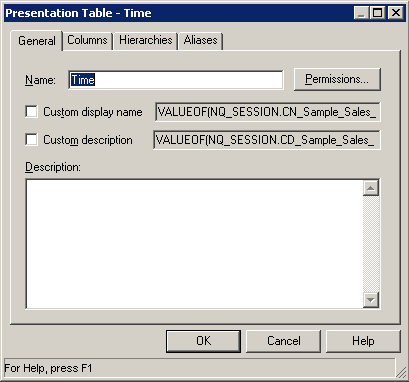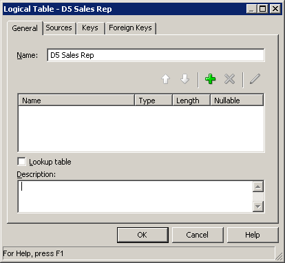 Generalタブで、D1 Time論理表ソースの名前をLTS1 Timeに変更します。 論理表から物理表へのマッピングは"Map to these tables"セクションで定義されています。