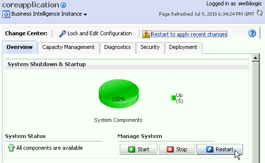 Oracle BIからサイン・アウトします。 Fusion Middleware Control Enterprise Managerは開いたままにしておきます。