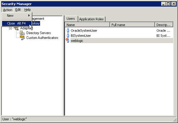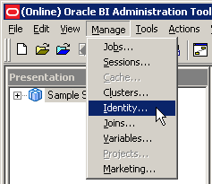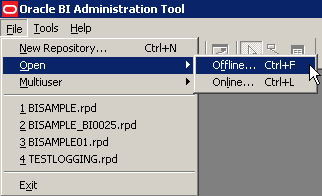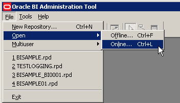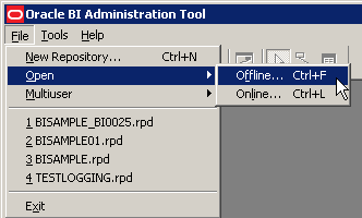「スタート」→「すべてのプログラム」→「Oracle Business Intelligence」→「BI Administration」の順に選択してAdministration Toolを開きます。