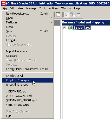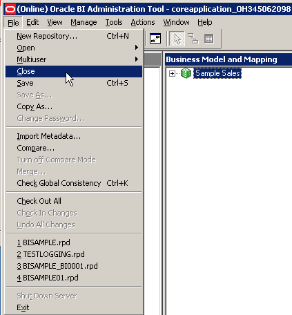 リポジトリを閉じます。 Administration Toolは開いたままにします。 Presentationレイヤーの変更は不要です。 ビジネス・モデルを変更したことで、問合せの処理方法やアクセスするソースなどに影響が及びますが、 ユーザー・インタフェースはそのままであるため、Presentationレイヤーは変更する必要がないのです。 Oracle BI Serverでは、ユーザーの問合せに基づいて適切なソースが自動的に使用されます。