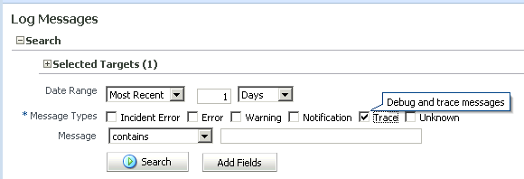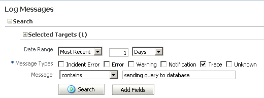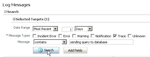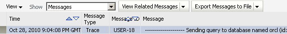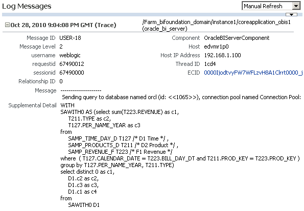 Fusion Middleware Control Enterprise Managerに戻り、問合せのログをチェックします。 ヒント:「Refresh」ボタンをクリックして、ログを最新の状態にします。