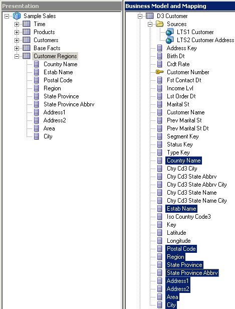 ビジネス・モデルの主要な目的は、ユーザーがどのように業務を捉えているかをユーザー自身の用語で記録することです。 ビジネス・モデルは物理スキーマを簡略化し、ユーザーのビジネス用語を物理ソースにマッピングします。 ほとんどの用語は、ビジネス・モデルの論理列に変換されます。 論理列の集合体は、論理表を形成します。 各論理列(つまり各論理表)は、1つ以上の物理オブジェクトをソースとして持つことができます。
