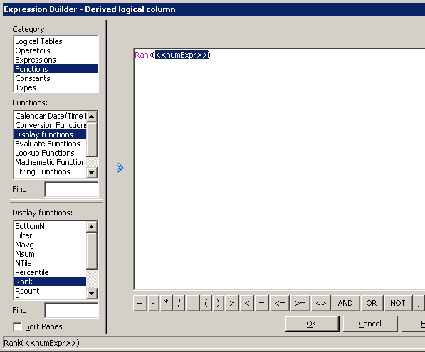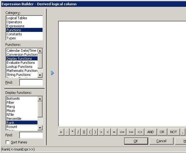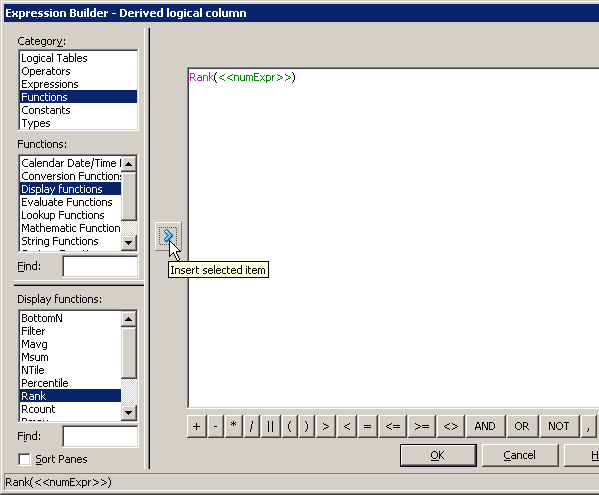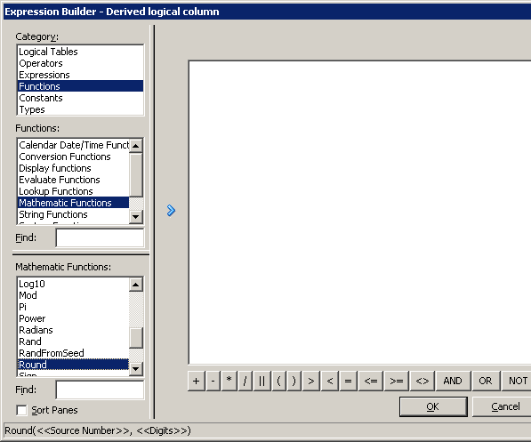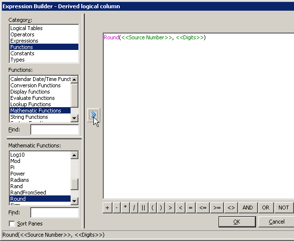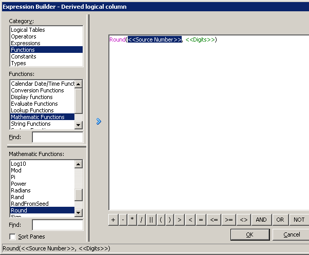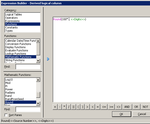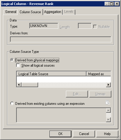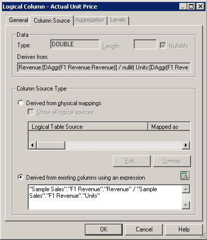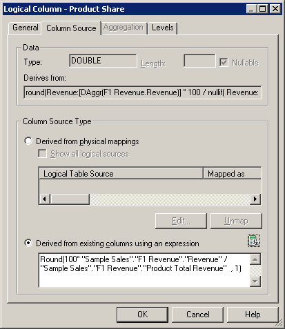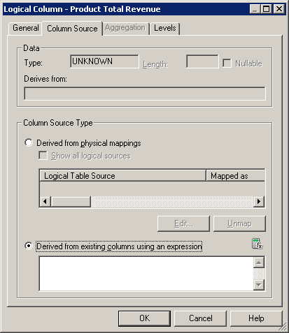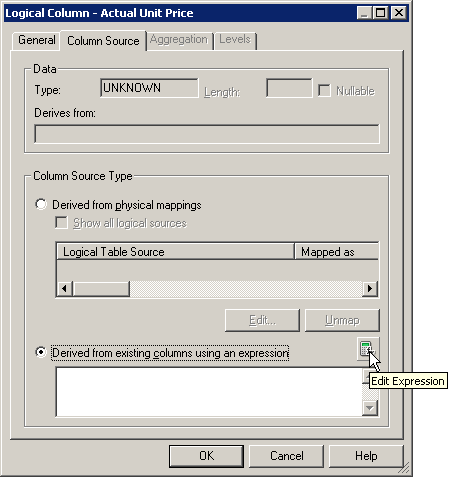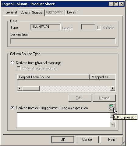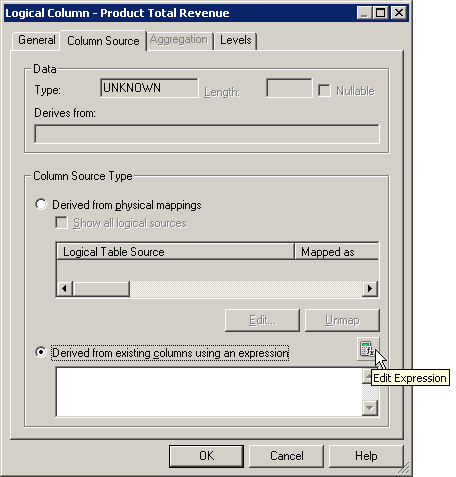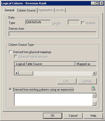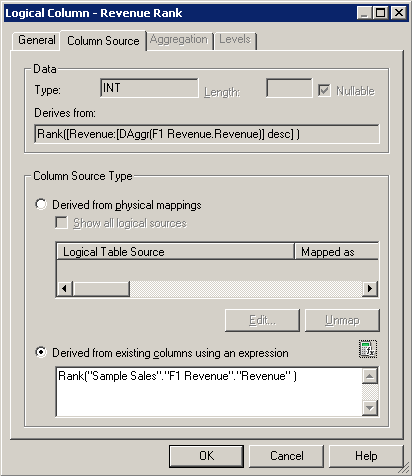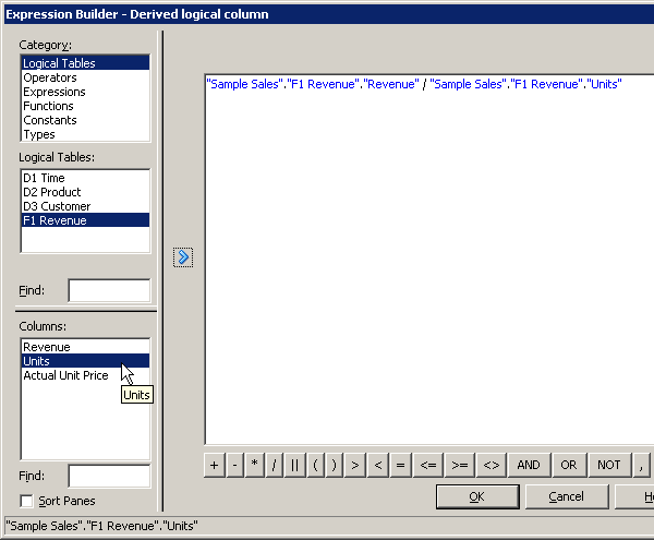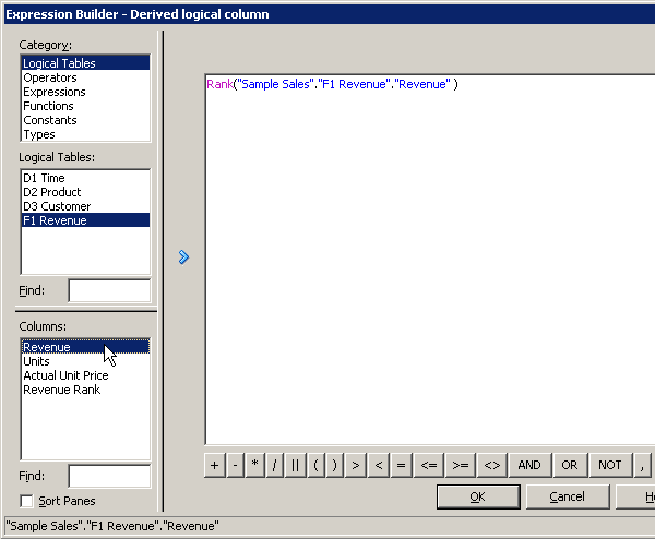 「OK」をクリックして、Expression Builderを閉じます。 Logical Columnダイアログ・ボックスで作業内容をチェックします。