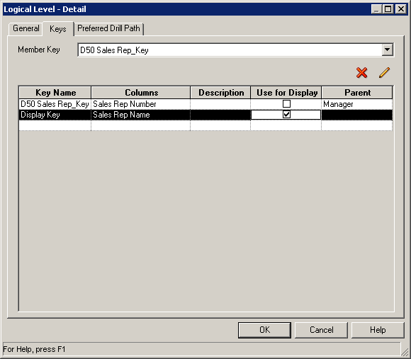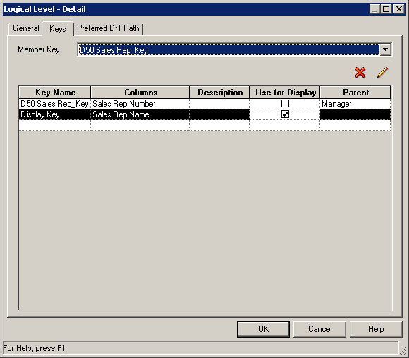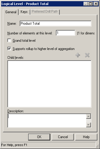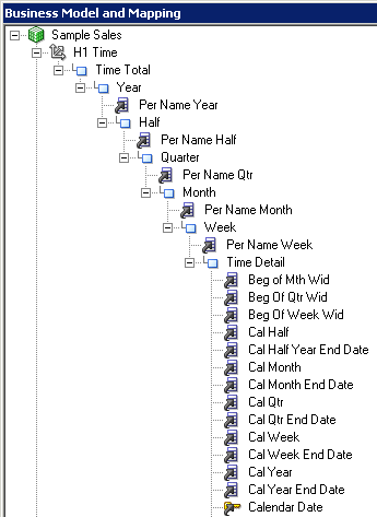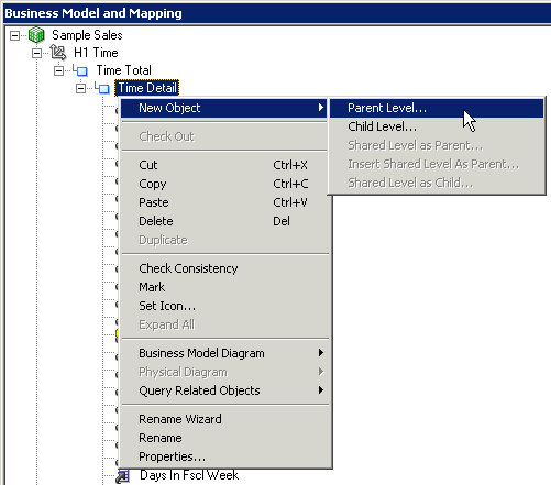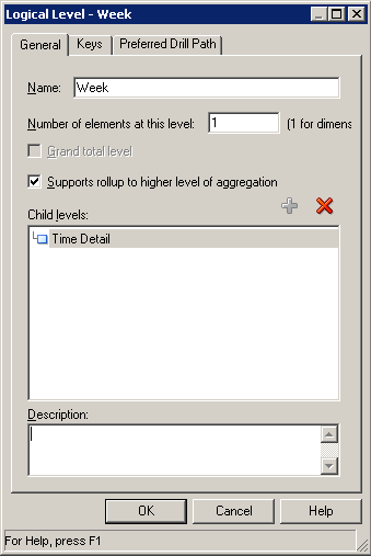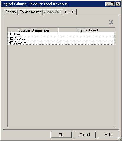 「H1 Time logical」ディメンションを展開し、「Times Detail」レベルをダブルクリックしてLogical Levelダイアログ・ボックスを開きます。