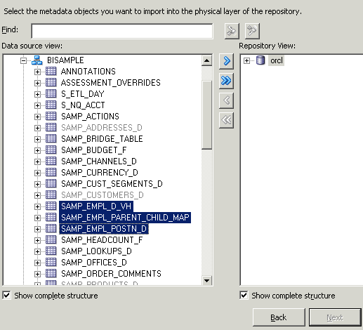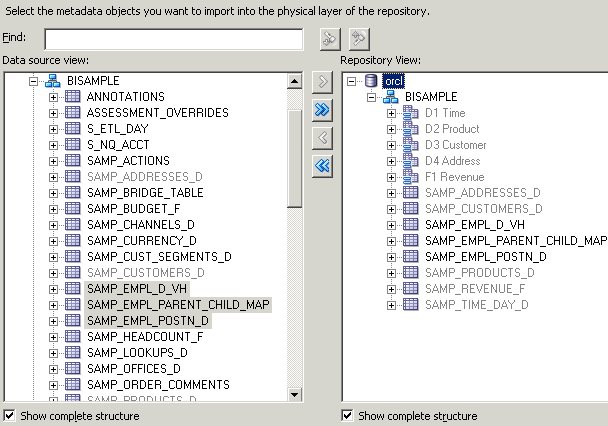 「Import Selected」ボタンをクリックして、選択した表をRepository Viewに追加します。