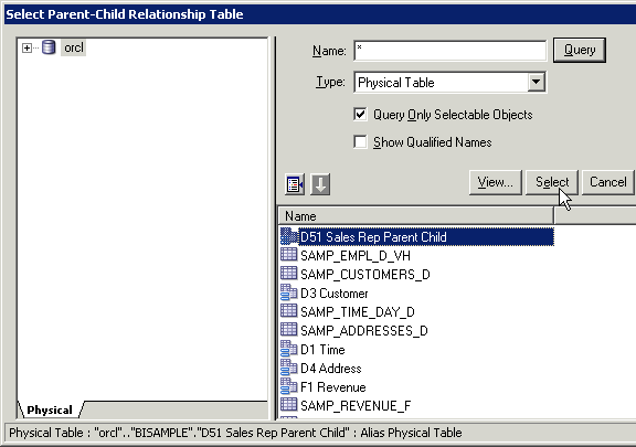 「OK」をクリックして、Physical Tableダイアログ・ボックスを閉じます。