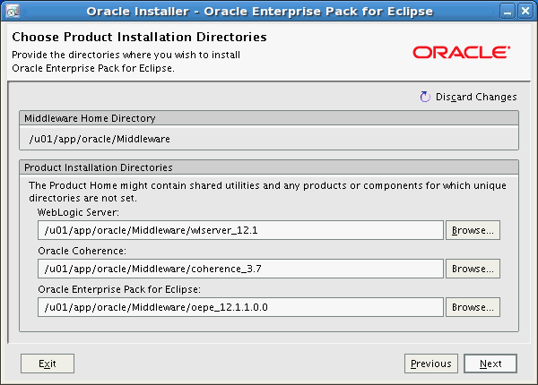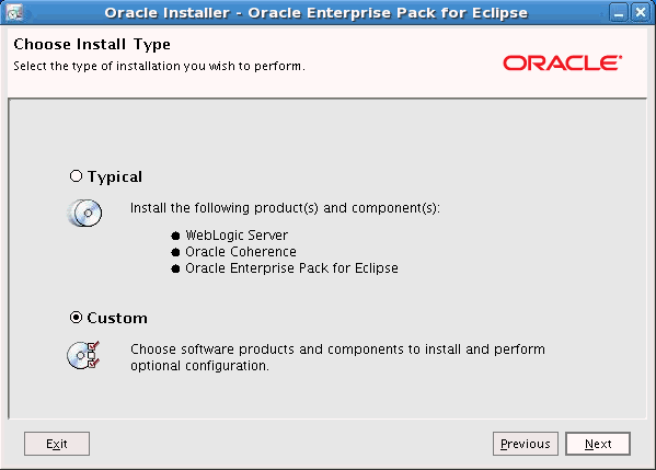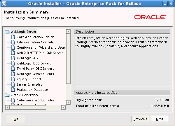 注: 使用するインストーラによっては、チュートリアルと同じ製品が表示されない場合があります。 一連のチュートリアルに必要な製品はWebLogic Serverのみであるため、Oracle CoherenceやOracle Enterprise Pack for Eclipseがインストールされていなくても問題はありません。