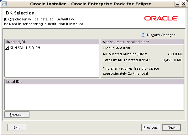 JDK Selection画面でインストールするJDKを選択します。 このチュートリアルではSUN SDK 1.6.0_29のみが表示されています。 複数のJDKが表示されている場合はすべてを選択してください。 「Next」をクリックします。