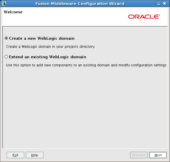 Oracle WebLogic Serverドメインを新規作成するには、以下の手順を実行します。