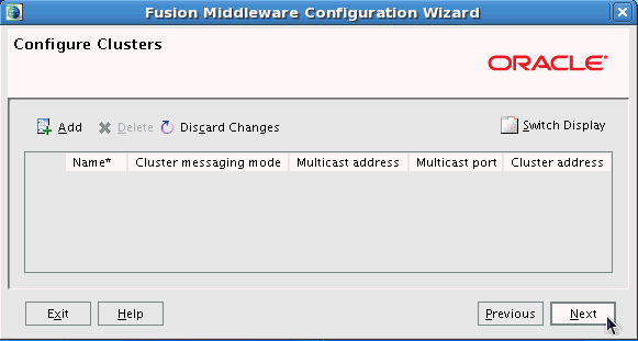 ターミナル・ウィンドウで、<MIDDLEWARE_HOME>/wlserver_12.1/common/binに移動します。 このチュートリアルで使用した<MIDDLEWARE_HOME>は、/u01/app/oracle/Middlewareです。 次のコマンドを入力して、構成ウィザードを実行します。 $ ./config.sh