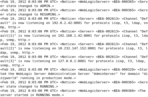 スクリプトが実行を続ける間、<Notice>: このメッセージは、管理サーバーが起動されており、実行中であることを意味します。