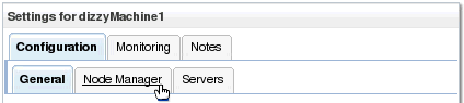 Settings for dizzyMachine1で「Configuration」タブをクリックし、続いて「Node Manager」サブタブをクリックします。