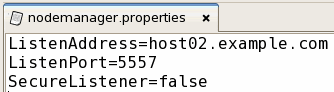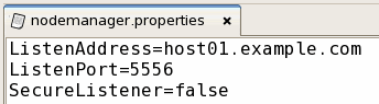 新しいファイル<MIDDLEWARE_HOME>/user_projects/nodemanager/dizzyMachine1/nodemanager.propertiesを作成し、編集します。