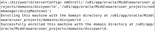 nmEnroll('/u01/app/oracle/Middleware/user_projects/domains/dizzyworld',