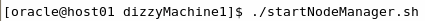 host01で<MIDDLEWARE_HOME>/user_projects/nodemanager/dizzyMachine1へ移動し、次のコマンドを入力します。 ./startNodeManager.sh