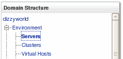 再度、WebLogic Serverの管理コンソールにアクセスします。 Domain Structureセクションで「Environment」を開き、「Servers」をクリックします。