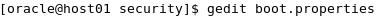 securityディレクトリでboot.propertiesという名前のテキスト・ファイルを作成し、これを編集します。 このチュートリアルでは、geditエディタを使用します。 $ gedit boot.properties