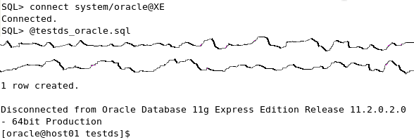 systemユーザーとしてデータベースに接続します。 接続時にパスワードとデータベース名を指定できます。 このチュートリアルでは、次のコマンドを使用します。 SQL> connect system/oracle@XE 次のコマンドを使用して、SQLスクリプトを実行します。 SQL> @testds_oracle.sql
