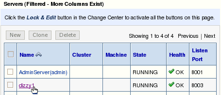 管理対象サーバーdizzy1も実行中である必要があります。 まだ稼働していない場合は、これを起動します。 別のターミナル・ウィンドウでドメイン・ディレクトリに移動し、cdからbinサブディレクトリに移動します。 次のコマンドを入力します。 $ ./startManagedWebLogic.sh dizzy1 http://host01.example.com:8001