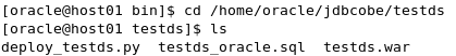 次に、testds.warファイルのあるディレクトリへ移動します。 このファイルは、先ほど解凍したzipファイルに含まれていたものです。 このチュートリアルでは、zipファイルは/home/oracle/jdbcobe/testdsディレクトリに解凍されています。