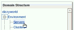 管理コンソールのDomain Structureで「Environment」を開き(横にある「+」をクリック)、 次に「Server」をクリックします。