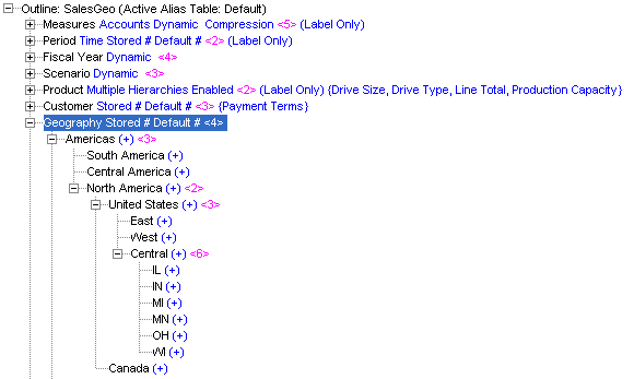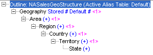 ハードディスク・ドライバの製造会社であるHyptekは、過去の売上分析に使用するEssbaseデータベース・アウトラインを再設計します。 アウトラインSalesGeoを地理的なラインに従って拡張し、販売の管轄区域の売上データをより詳細に分析できるようにします。 アウトラインの再設計の第一段階では、合衆国およびカナダの販売地域を追加します。