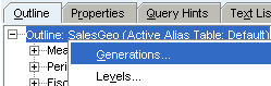 アウトラインに世代名に対するビジュアル・キューはありませんが、アウトライン編集セッション中に「Outline」を選択してから「Generations」を選択することにより、世代名の選択内容を確認できます。これには、アウトライン・ノードから右クリックします。